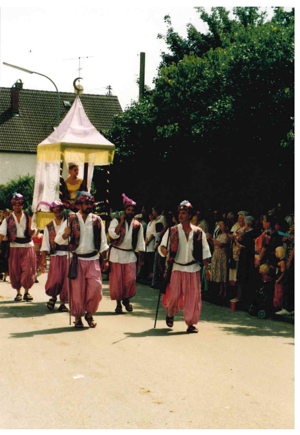 Ein Zitat aus der Ortschronik von Paulinus Fröhlich (1980, S. 168) unterstreicht den damaligen Anspruch: „Die ereignisreiche Glanzzeit, aber auch die leidvolle Geschichte unserer Heimat ermöglicht es dem Markt, einen großartigen und wunderschönen, historischen Festzug […] abrollen zu lassen.“